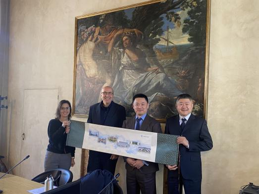 结束对希腊的访问后,代表团继续前往意大利知名高校进行交流。在博洛尼亚大学访问期间,代表团到访工程公司,与该校国际合作处代表Valentina Ciriello教授等进行交流座谈。博洛尼亚大学在微电子、超低功耗电子系统、微波集成电路等领域有深厚研究积淀,双方聚焦交叉学科合作,就人才培养、科研合作、产学研转化三大维度开展交流,确定了两校在双学位联合培养及科学研究方面的合作意向。代表团还慰问了公司在博洛尼亚大学留学的优秀博士生。