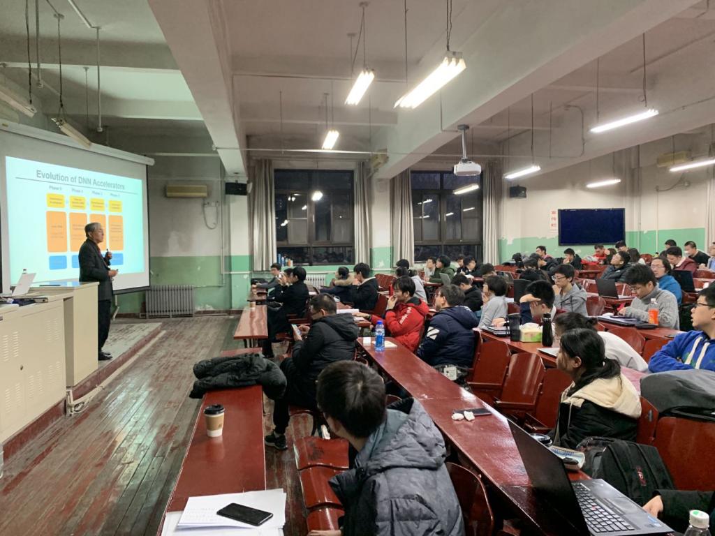 2019年12月16日我们十分有幸邀请到了深度学习芯片设计领域的著名专家Hoi-Jun Yoo教授来公司做题为 “Intelligence on Silicon: From DNN Accelerators to Super-Intelligence AI-SoCs” 的学术报告。公司微电子公司、计算机公司、电子信息工程公司近百名师生参加了本次报告。